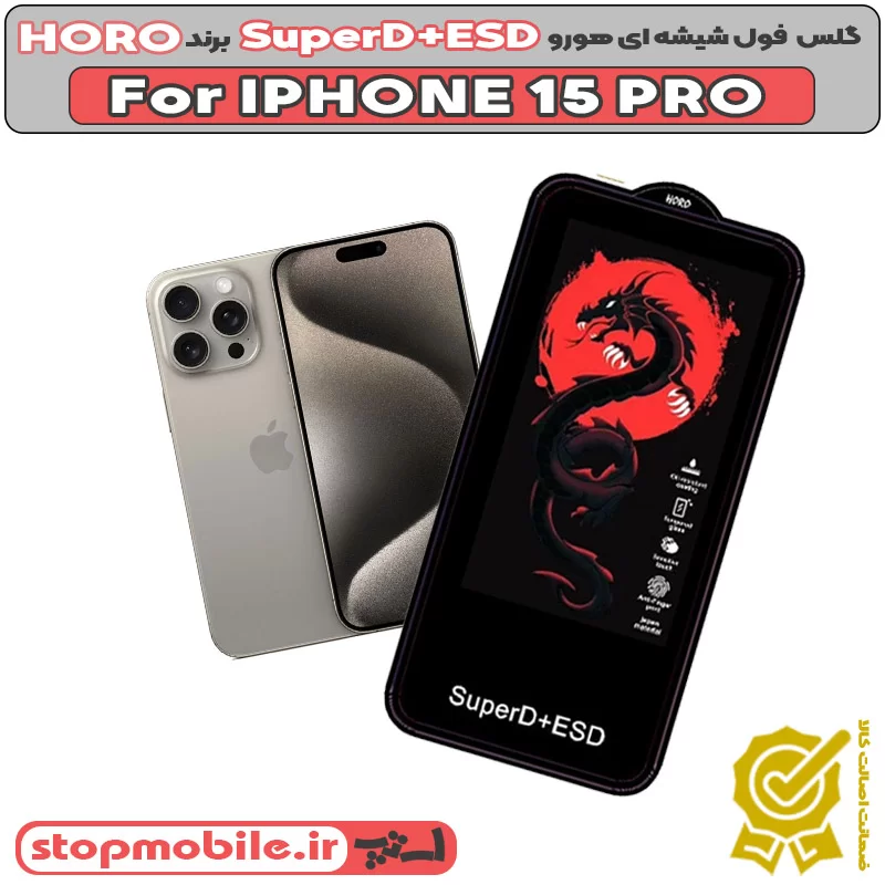 گلس آیفون 15 پرو – IPHONE 15 PRO مدل SuperD+ESD برند HORO