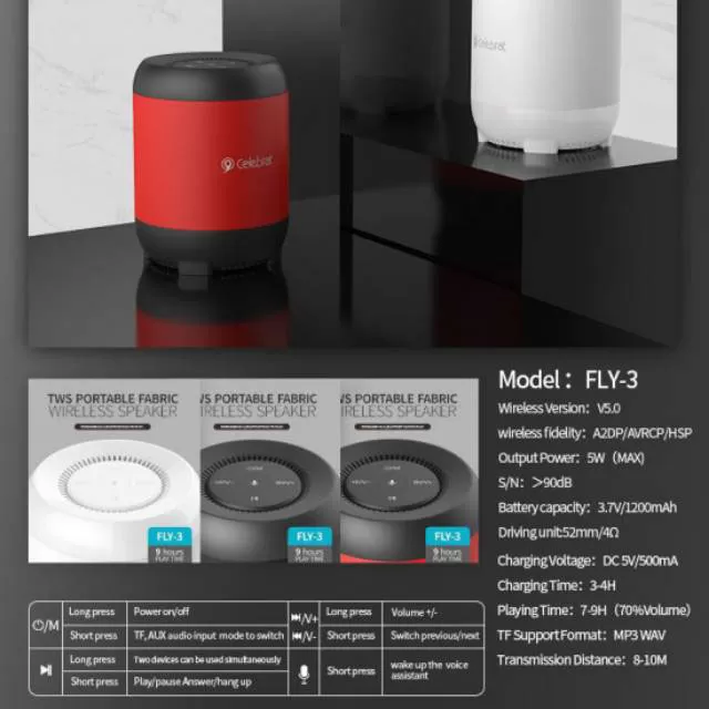 این اسپیکر سبک می باشد و در ابعاد کوچک طراحی شده است و می توانید آن را به هر جا حمل کنید. FLY-3 با طراحی شیک کاملاً جدید الهام گرفته از مد روز است.
