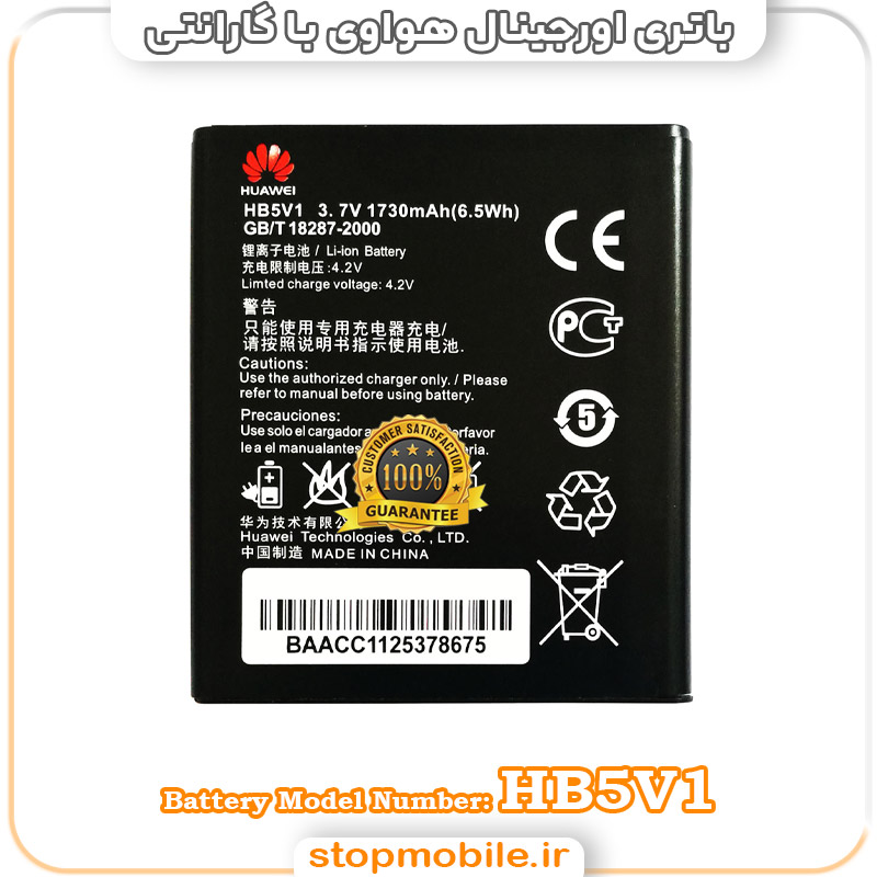 باتری اصلی هواوی با مدل فنی HB5V1 توسط کاربر عادی قابل تعویض بوده و نوع جدا شدنی است.باتری اصلی گوشی هواوی