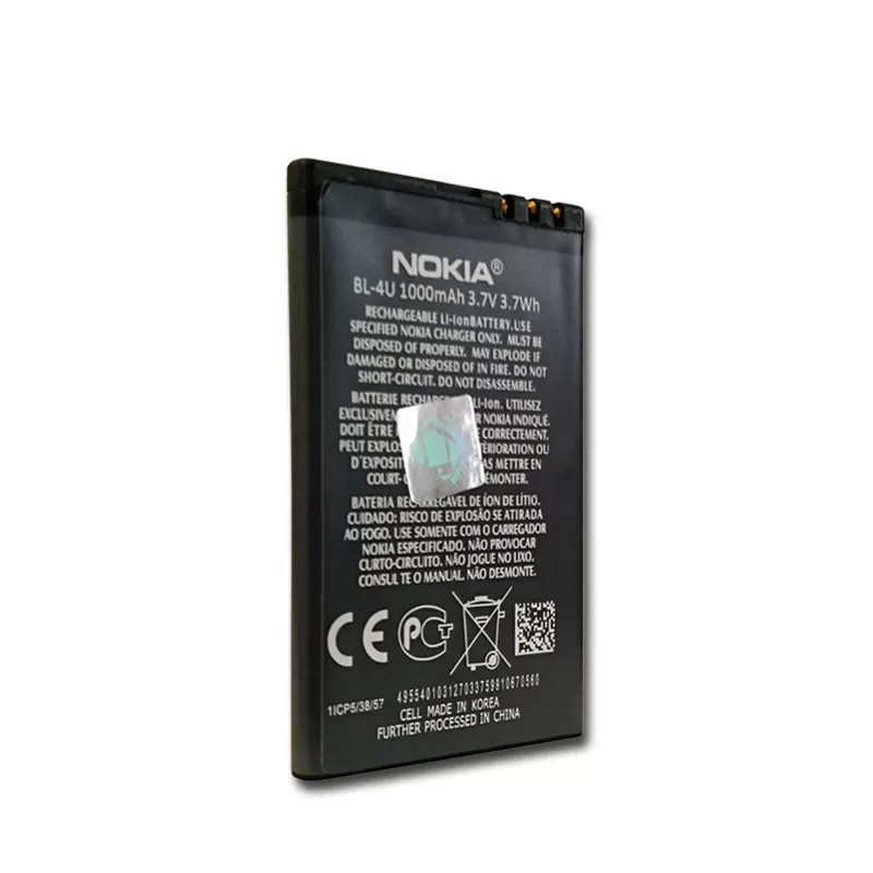 باتری نوکیا BL-4U : توسعه وسایل الکترونیکی مانند گوشی‌های تلفن همراه و لب تاپ‌ها تقاضا را برای باتری‌های قابل شارژ افزایش داده است که در این میان باتری‌های لیتیم-یون از دیگر انواع باتری‌ها عملکرد و بازده مناسب‌تری را از خود نشان داده و بیشترین تولید را در میان دیگر انواع باتری‌ها دارند. این باتری‌ها مانند انواع دیگر باتری‌ها از پیل‌های الکتروشیمیایی با دو الکترود و ماده
