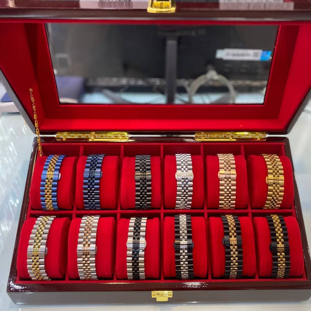 یکی از زیباترین و با کیفیت ترین دستبند های مردانه می باشد. که به صورت طرح ROLEX می باشد. و از جنس فلز استیل 316 ساخته شده است. و به واسطه کیفیت بی نظیر استیل آن بدون تغییر رنگ است. و تا سال ها می تواند شما را از خرید دستبند مردانه جدید بی نیاز کند. دستبند مردانه خاص دارای روکش چند لایه رودیوم است. و به همین جهت رنگ مشابه طلا سفید دارد. و از سوی دیگر روکش رودیوم از ایجاد حساست بر روی پوست جلوگیری می کند. و دستبند مردانه را با پوست های حساس نیز سازگار می سازد. بند استیل طرح رولکس دارای قفل تاشو می باشد و طول تقریبی آن 21 سانتی متر است. دستبند مردانه ROLEX بیشتر حالت اسپرت دارد .و می توان آن را با انواع زیورآلات نقره ای نطیر انگشتر و یا ساعت استیل ست کرد. دستبند مردانه استیل طرح رولکس مناسب هدیه دادن به همسر، دوست، برادر و … در مناسبت های مختلف است و می تواند گزینه مناسبی برای افرادی باشد که قصد خرید دستبند مردانه خاص را دارند. این دستبند را می توان به صورت روزانه استفاده کرد. اما باید همواره به صورت درست نگهداری و مراقبت شود تا از درخشندگی و زیبایی آن کاسته نشود. دستبند رولکس اصل را میتوانید با همسر یا پارتنر خود ست کنید.