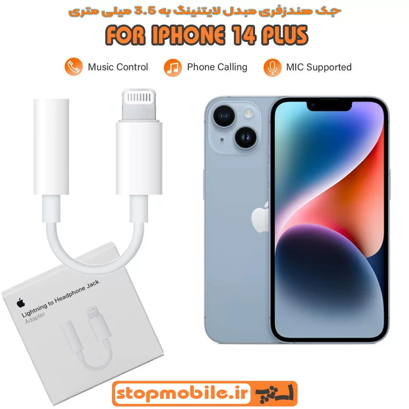 جک هندزفری IPHONE 14 PLUS مبدل لایتنینگ به 3.5 میلی متری ( اورجینال اپل استوری )