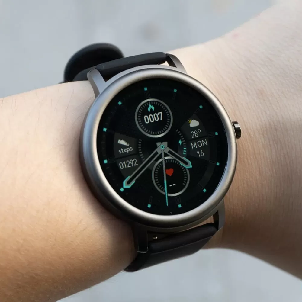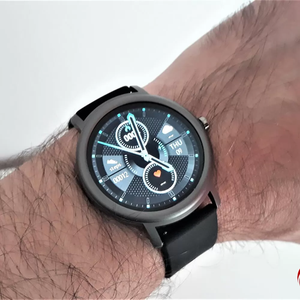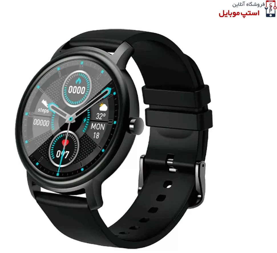 • ساعت دارای یک صفحه نمایش گرد 1.28 اینچی از نوع TFT است که رزولوشن بالایی دارد. این نمایشگر رنگ های غنی و تصاویر طبیعی را ارائه می دهد. علاوه بر این، وضوح صفحه در زیر نور مستقیم آفتاب هم مناسب است.