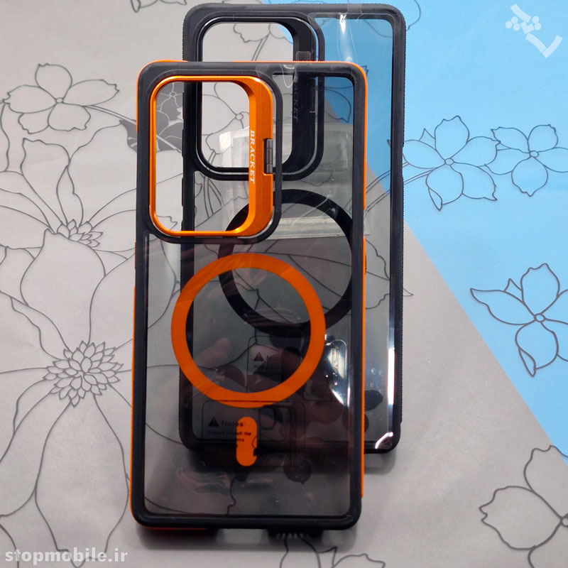 قاب در دو رنگ مشکی و نارنجی-مشکی ارائه میشود تا مطابق با سلیقه شما باشد و ظاهری مدرن و منحصر به فرد به گوشی ببخشد.