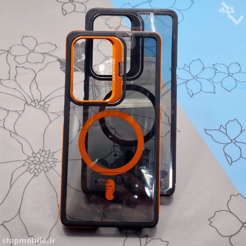 قاب در دو رنگ مشکی و نارنجی-مشکی ارائه میشود تا مطابق با سلیقه شما باشد و ظاهری مدرن و منحصر به فرد به گوشی ببخشد.