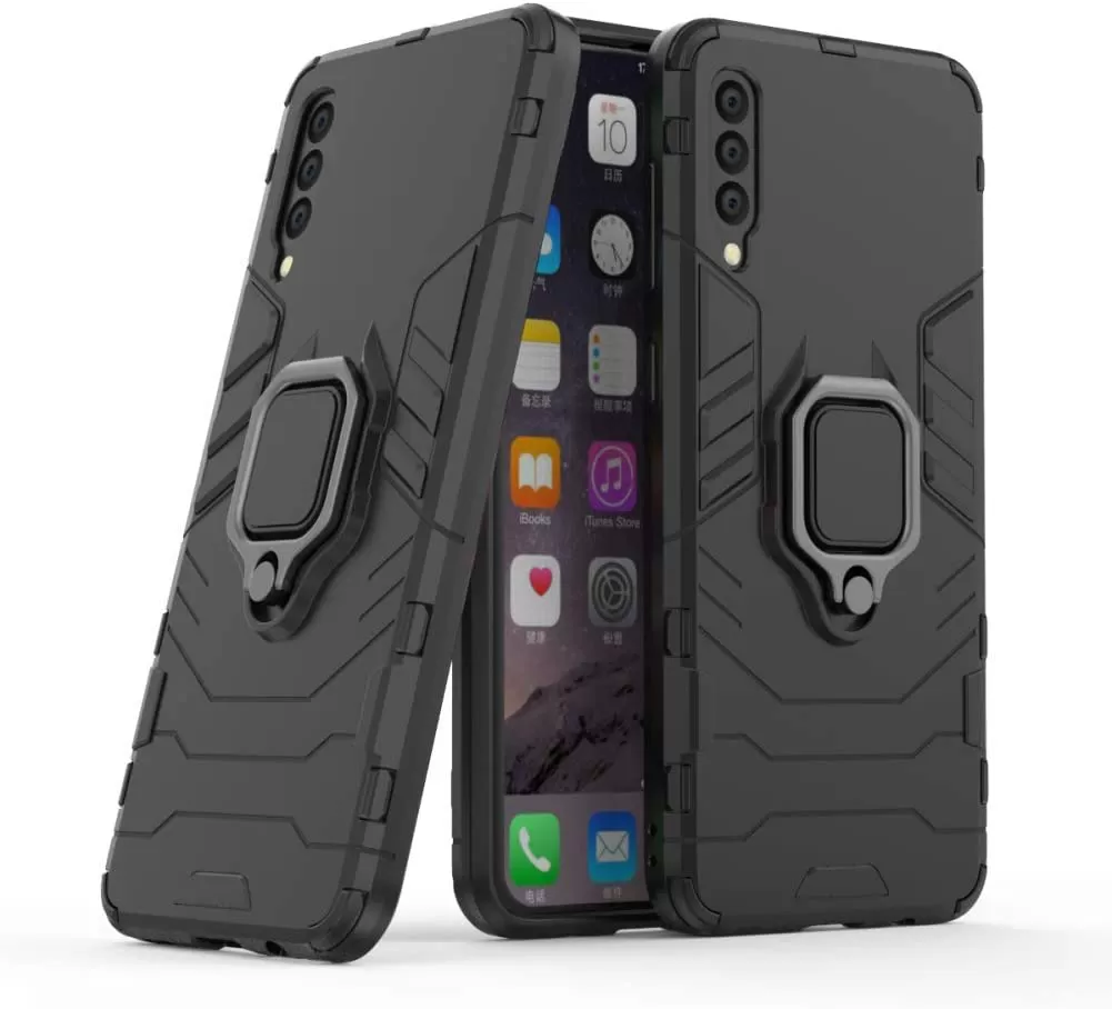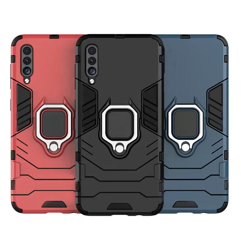 این قاب همانطور که از نام آن پیدا است، در مقابل ضربه ایمنی خوبی از خود نشان میدهد. قاب گوشی گلکسی A30S مدل ضد ضربه انگشتی به دلیل طراحی خاصی که دارد، از دست سر نمیخورد. این کاور موبایل از جنس پلی کربنات و پلی اورتان است. در برابر ضربه و خط و خش مقاوم است. بالا، پایین، لبهها و همچنین دکمههای گوشی را کاملا تحت پوشش قرار میدهد. علاوه بر بدنه گوشی، لبههای برجسته قاب هولدر دار سامسونگ A30S ایمنی بیشتری برای نمایشگر و دوربین گوشی ایجاد میکند. پس اگر نگران ایجاد خط و خراش برای روی لنز دوربین یا نمایشگر گوشی هستید، این قاب میتواند تا حدودی خیال شما را راحت کند. این کاور ضد ضربه برشی دقیق مطابق با ابعاد گوشی دارد و محدودیتی در دسترسی به درگاههای اسمارت فون شما ایجاد نمیکند. همانطور که مشاهده میکنید کنارههای قاب دارای بامپری از جنس TPU است که به راحتی مانع از آسیب رسیدن به لبههای گوشی شما میشود.