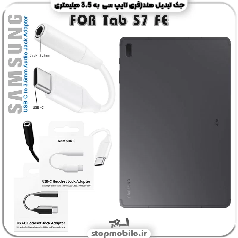 مبدل تایپ سی به صدا تبلت سامسونگ SAMSUNG TAB S7 FE T735 ( جک تبدیل هندزفری TYPE C به 3.5 میلیمتری )