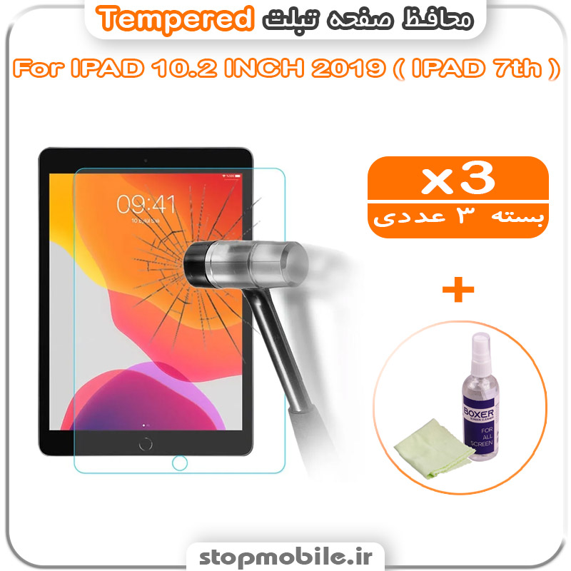 محافظ صفحه IPAD 10.2 INCH 2019 ( IPAD 7th ) مدل Tempered (پک سه عددی + کلینر)