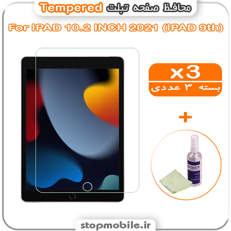 محافظ صفحه IPAD 10.2 INCH 2021 ( IPAD 9th ) مدل Tempered (پک سه عددی + کلینر)