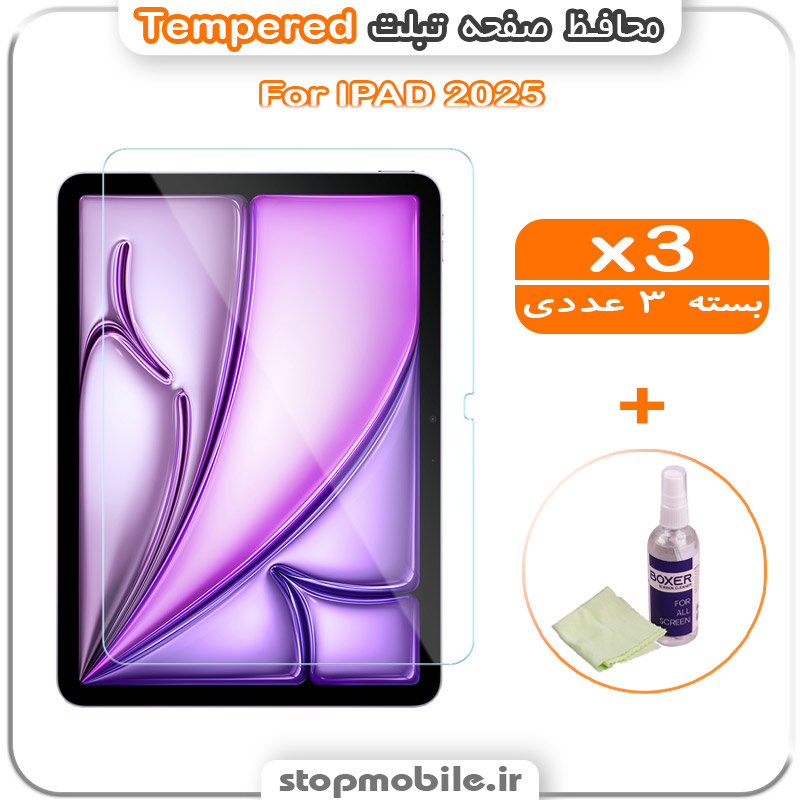 محافظ صفحه IPAD 11 iNCH 2025 مدل Tempered (پک سه عددی + کلینر)