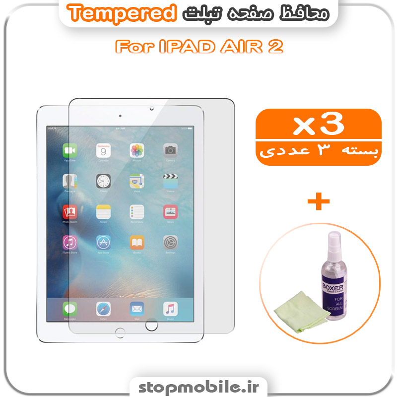 محافظ صفحه IPAD AIR 2 مدل Tempered (پک سه عددی + کلینر)