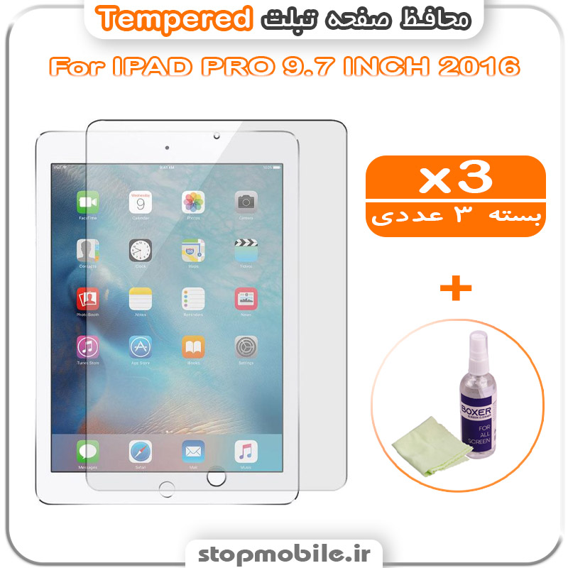 محافظ صفحه IPAD PRO 9.7 INCH 2016 مدل Tempered (پک سه عددی + کلینر)