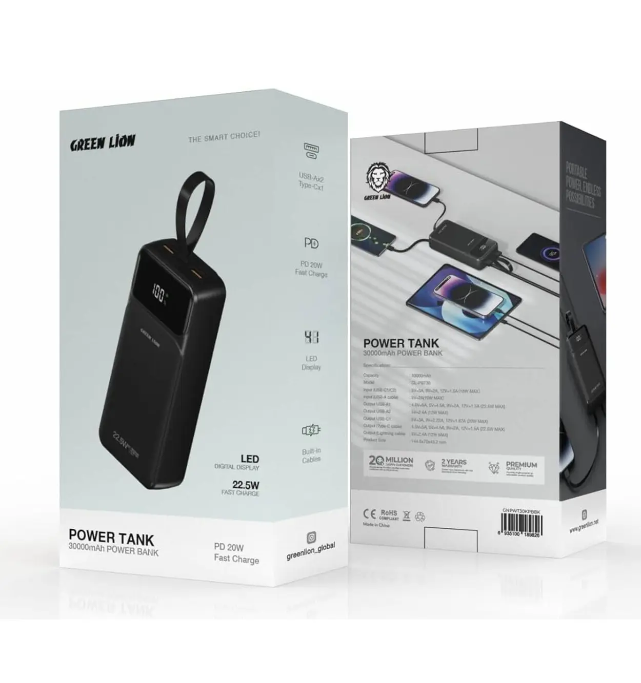 پاوربانک Green Line POWER TANK یک گزینه کامل و بسیار کاربردی برای افرادی است که به یک شارژر همراه قدرتمند و همیشه آماده نیاز دارند. ظرفیت 30000mAh آن امکان چندین بار شارژ انواع گوشی، تبلت و هندزفری را فراهم میکند.