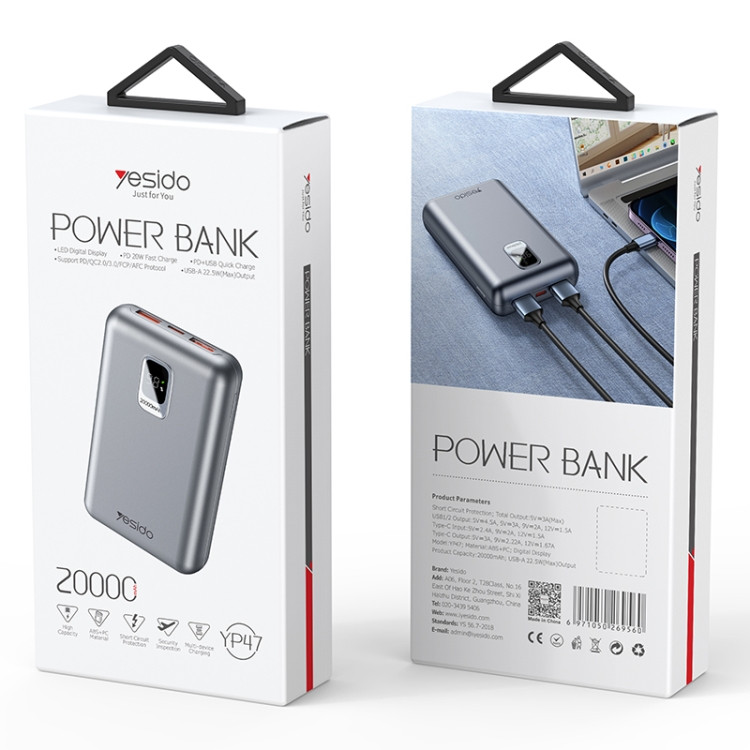 اگر شما مدام می بایست با گوشی کار کنید و همیشه شارژ کم دارید ، پاوربانک یسیدو مدل YP47 با ظرفیت 20000 میلی آمپر دقیقاً همان چیزی است که شما نیاز دارید که می تواند گوشی هوشمند شما را چندین بار شارژ کند.