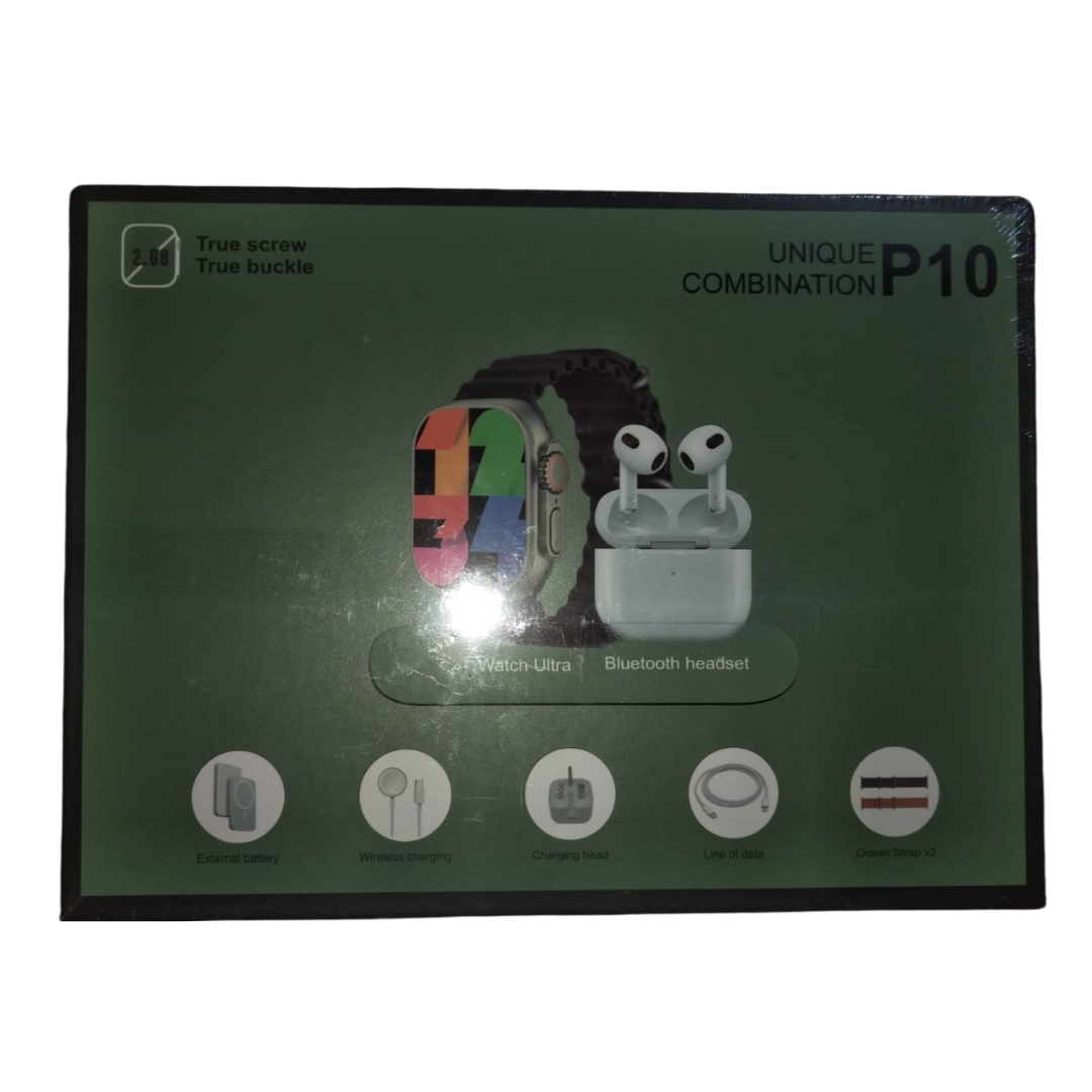 پک کامل ساعت هوشمند و ایرپاد مدل UNIQUE COMBINATION P10شامل 1 ساعت هوشمند و 1 ایرپاد به همراه لوازم جانبی پرکاربرد است که نیازهای روزمره شما را به طور کامل پوشش می‌دهد.