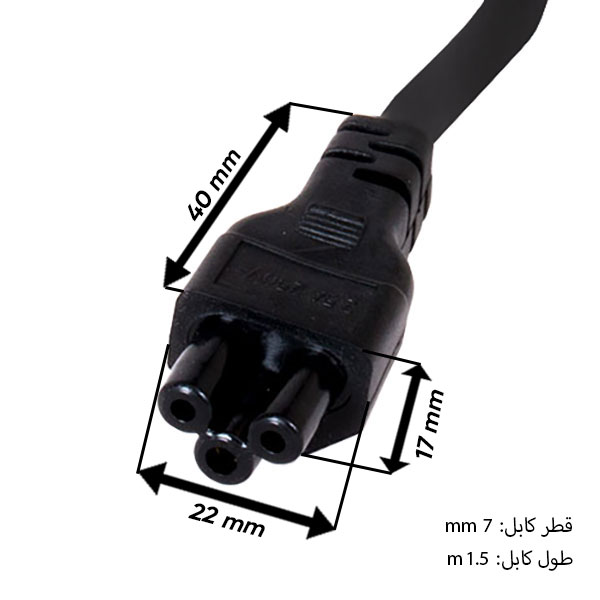 - کانکتور سه پین با دوشاخه EU مناسب برای پاور لپتاپهای متنوع