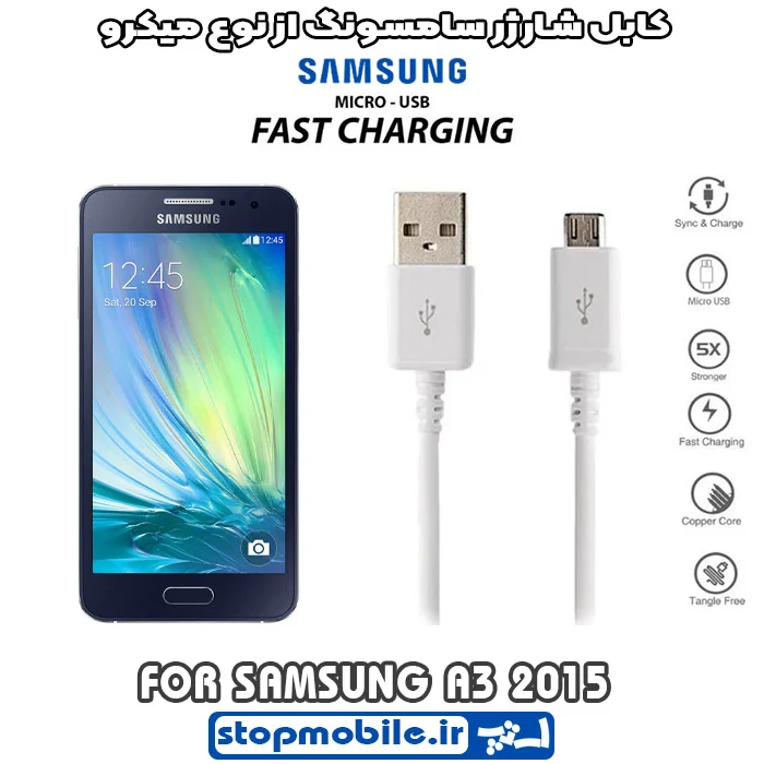 کابل شارژر گوشی سامسونگ A3 2015 از نوع میکرو USB