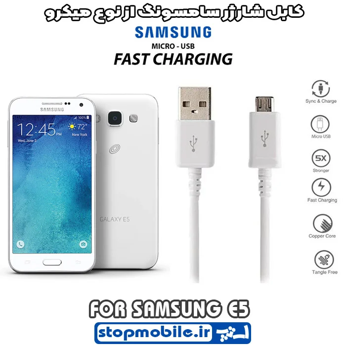 کابل شارژر گوشی سامسونگ E5 از نوع میکرو USB