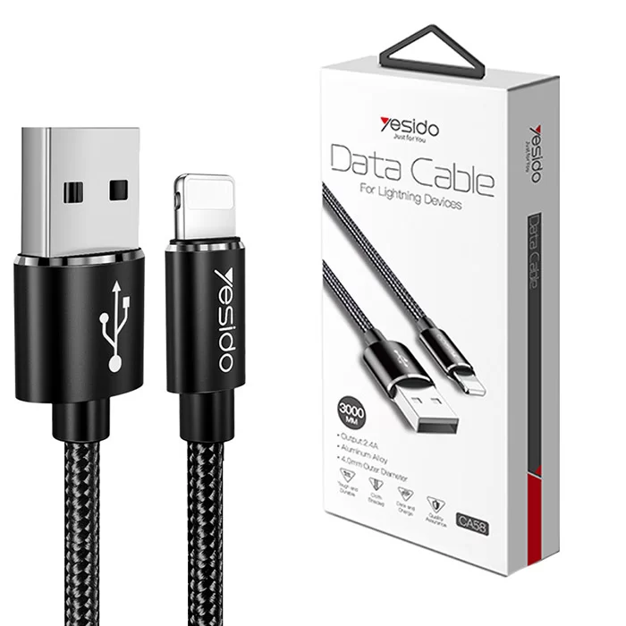 امروزه شارژر وایرلس ها عملیات شارژ را بسیار ساده کرده اند اما همچنان گوشی هایی هستند که دارای این قابلیت نبوده و یا نیاز به شارژ سریع دارند که در این صورت باید از کابل ها استفاده شود. کابل ca58 محصولی از کمپانی خوش نام Yesido بوده که مخصوص گوشی های دارای پورت lightning بوده و علت آن کانکتور لایتنینگ این محصول می باشد.