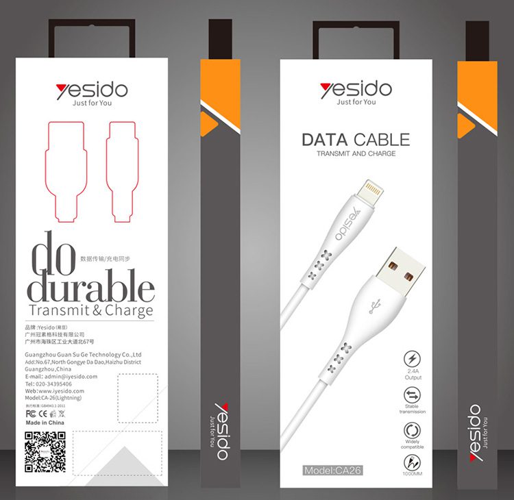 معرفی اجمالی محصول کابل یو اس بی به تایپ سی یسیدو Yesido Usb to TYPE C CA26 در این پست میخواهیم کابل CA25 محصولی از کمپانی Yesido را به شما معرفی کنیم. این محصول قادر است گوشی موبایل شما را با شدت جریان و ولتاژ ۵V-2.4A شارژ کند. طول ۱٫۲ متری این محصول برای استفاده های روزمره بسیار مناسب می باشد زیرا نه آنقدر بلند است که مزاحمتی ایجاد کند و نه آنقدر کوتاه است