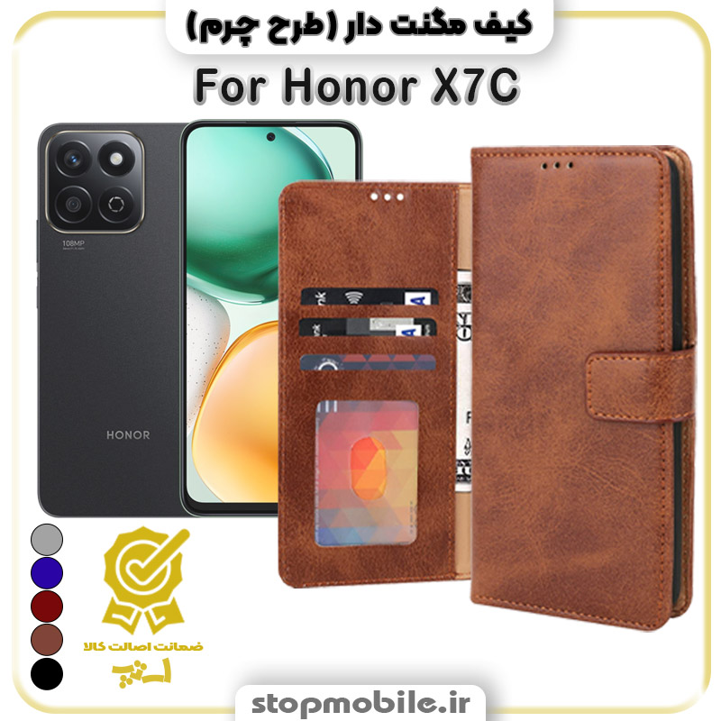 - کیف مگنت دار طرح چرم مناسب گوشی آنر X7C