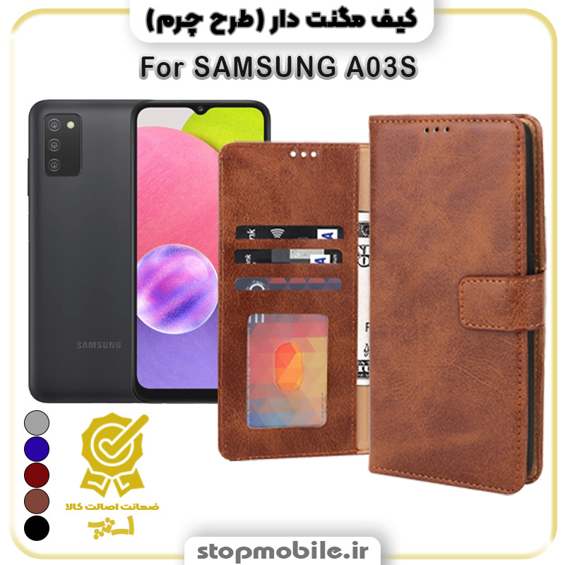 - کیف مگنت دار طرح چرم مناسب گوشی سامسونگ A03S