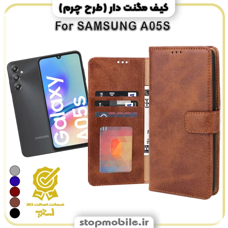 - کیف مگنت دار طرح چرم مناسب گوشی سامسونگ A05S