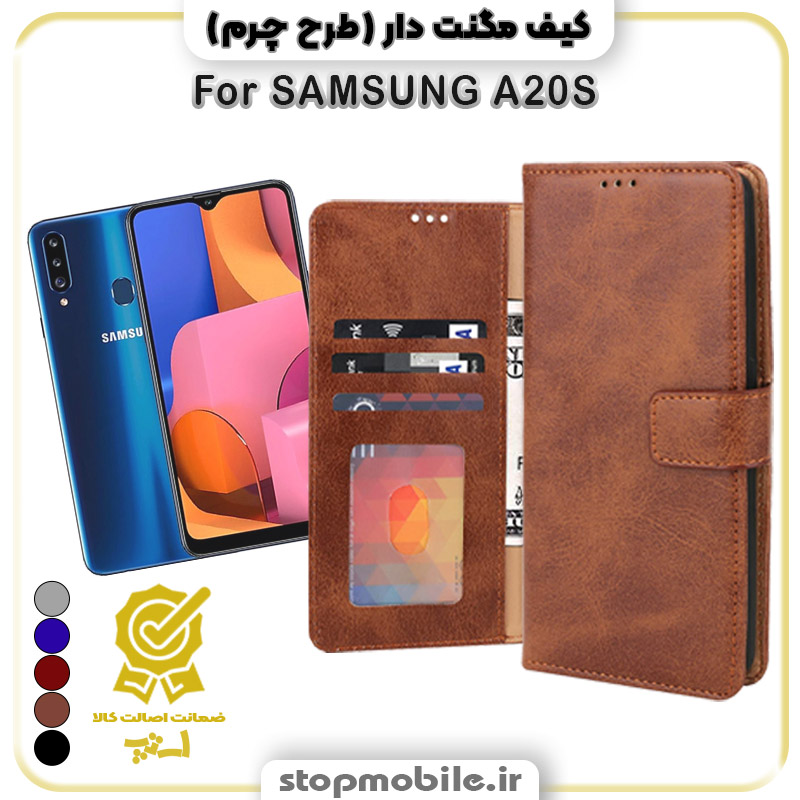 - کیف مگنت دار طرح چرم مناسب گوشی سامسونگ a20S