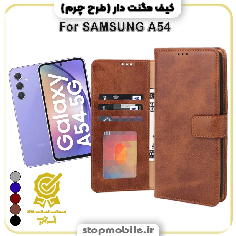 - کیف مگنت دار طرح چرم مناسب گوشی سامسونگ A54