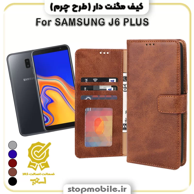 کیف مگنت دار سامسونگ J6 PLUS طرح چرم