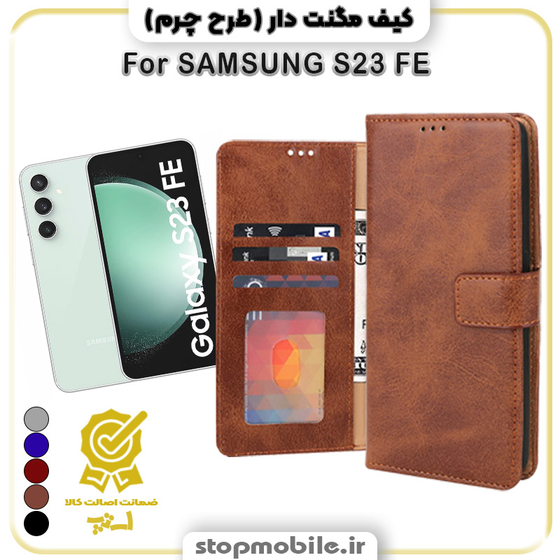 مشخصات کیف مگنت دار سامسونگ S23 FE طرح چرم