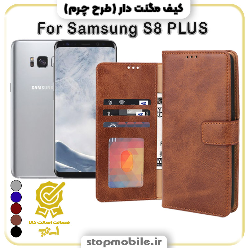- کیف مگنت دار طرح چرم مناسب گوشی سامسونگ S8 PLUS