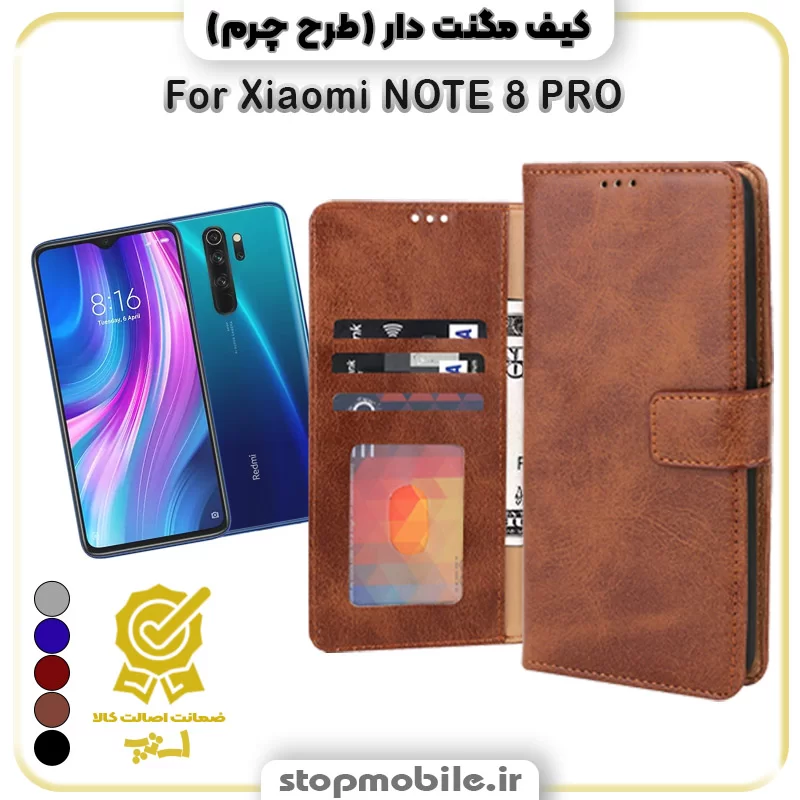 - کیف مگنت دار طرح چرم مناسب گوشی شیائومی NOTE 8 PRO