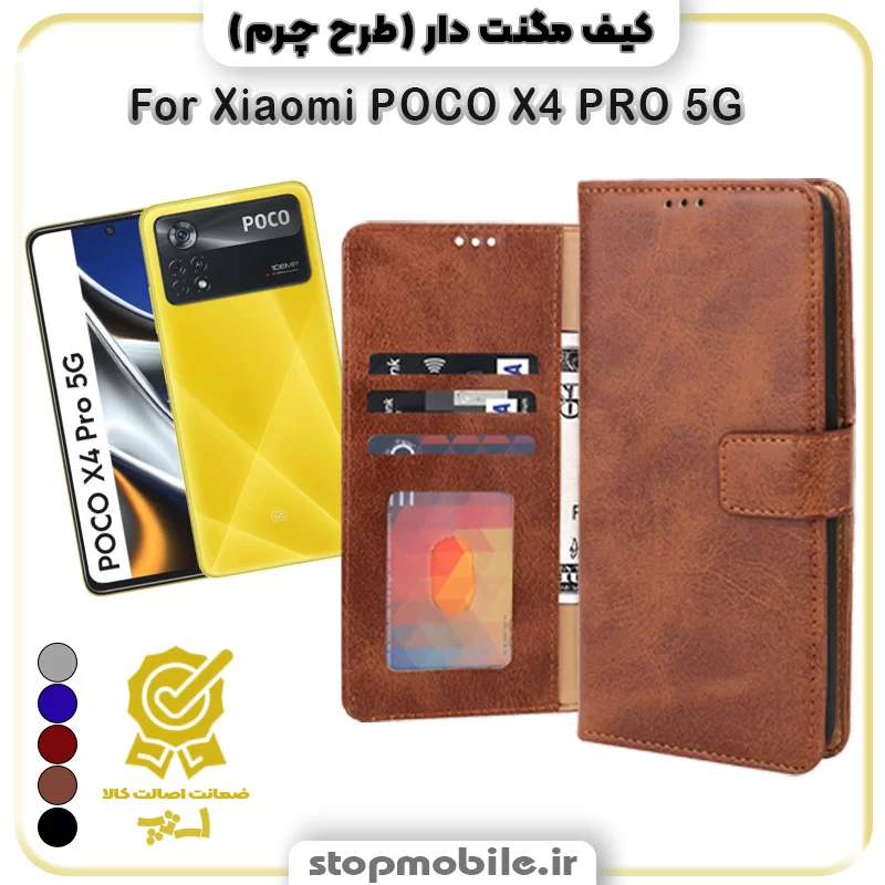 - کیف مگنت دار طرح چرم مناسب گوشی شیائومی POCO X4 PRO 5G