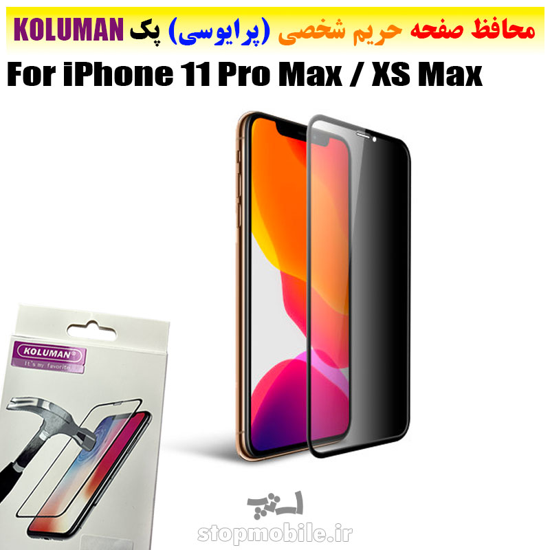 گلس حریم شخصی آیفون iPhone 11 Pro Max / XS Max برند KOLUMAN (پرایوسی)
