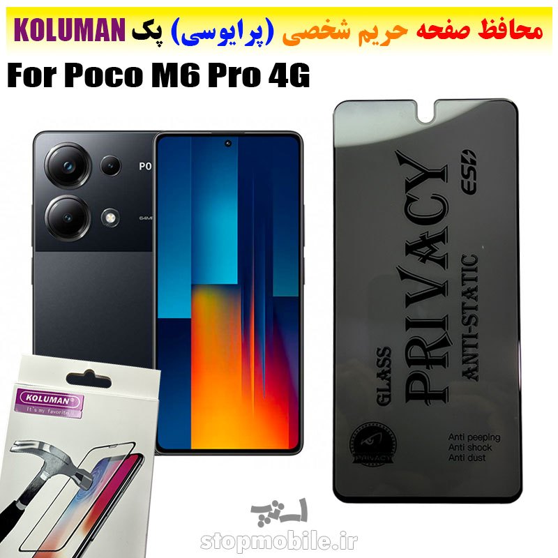 گلس حریم شخصی شیائومی Poco M6 Pro 4G برند KOLUMAN (پرایوسی)