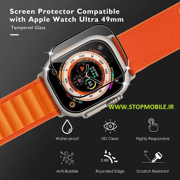 مشخصات محافظ صفحه نمایش ساعت هوشمند اپل واچ سایز Apple Watch ULTRA – 49mm تمام چسب از جنس شیشه ای تمپرد