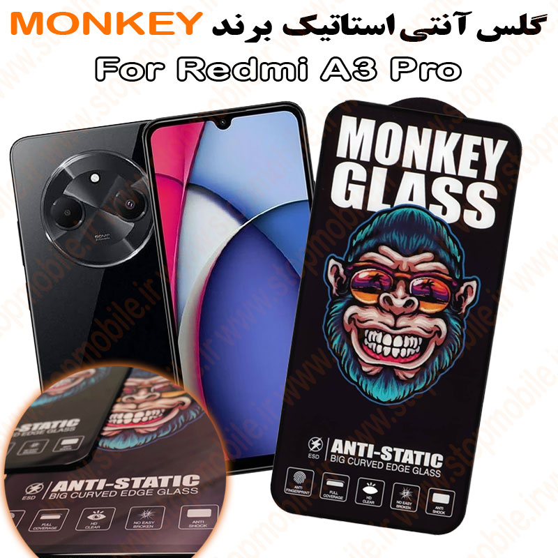 گلس شیائومی Redmi A3 Pro مدل آنتی استاتیک برند MONKEY