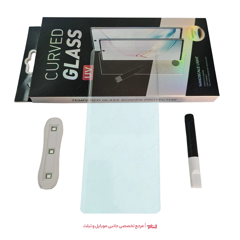 1-در مرحله اول، صفحه نمایش گوشی را با استفاده از دستمال مرطوب تمیز کرده و سپس با دستمال خشک نمایشگر را به طور کامل خشک و تمیز نمایید. 2- سپس چسب مایع UV موجود در پک محصول را دقیقا در وسط نمایشگر، از بالا به پایین به صورت یک خط بریزید. (زیرا گلس UV به تنهایی خاصیت چسبندگی نداشته و با استفاده از چسب UV ، روی نمایشگر نصب می گردد.) 3-در مرحله بعد محاظف صفحه UV را روی نمایشگر قرار داده و منتظر بمانید تا چسب به طور کامل در زیر آن پخش گردد. 4-سپس اشعه UV همراه محصول را به آن بتابانید تا گلس روی صفحه نمایش به طور کامل فیکس و ثابت شود.مزایای استفاده از چسب مایع UV