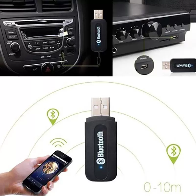 اتصال بی سیم از طریق بلوتوث نسخه ۲٫۱ با برد اتصال ۱۰ متر و اتصال با سیم از طریق رابط جک ۳٫۵ میلی متری صدا بدنه ی پلاستیکی، رابط USB و مناسب برای اتصال اسپیکر، لپ تاپ، گوشی و … به پخش خودرو